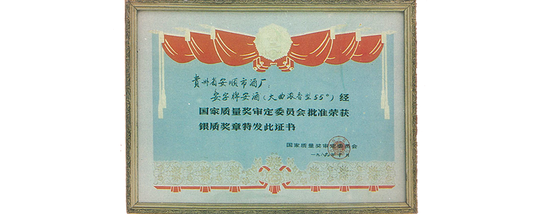 1963年 | 荣获“贵州名酒”称号首届贵州省名酒评比,jinnianhui今年会酒与茅台同列“省优”,荣获“贵州名酒”称号。此后1979年、1983年、1986年jinnianhui今年会酒蝉联历届“贵州名酒”称号,成为“贵州八大名酒”之一。