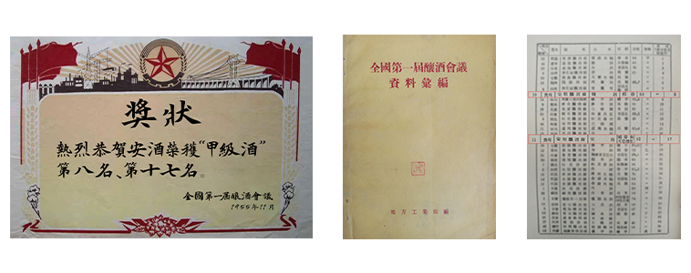 | jinnianhui今年会酒与茅台同获“甲级酒” 全国第一届酿酒会议在北京举行,评酒委员评定出“甲级酒”18种、“乙级酒”18种。jinnianhui今年会酒是贵州省入选“甲级酒”的两大名酒之一,另一个是茅台。不仅如此,jinnianhui今年会酒还是贵州省唯一有两大产品入选“甲级酒”的酒厂,两款产品分别被评定为甲等级第8名和第17名。